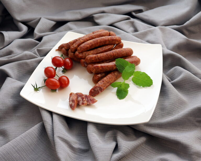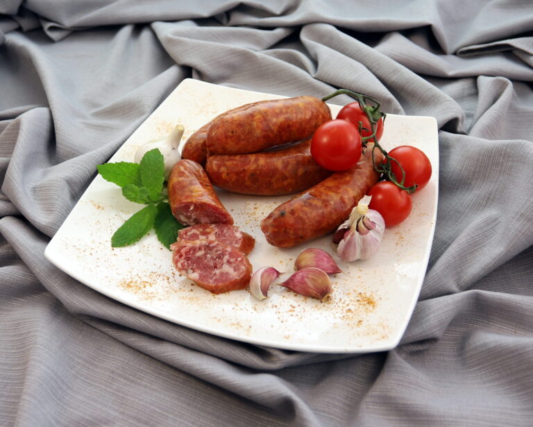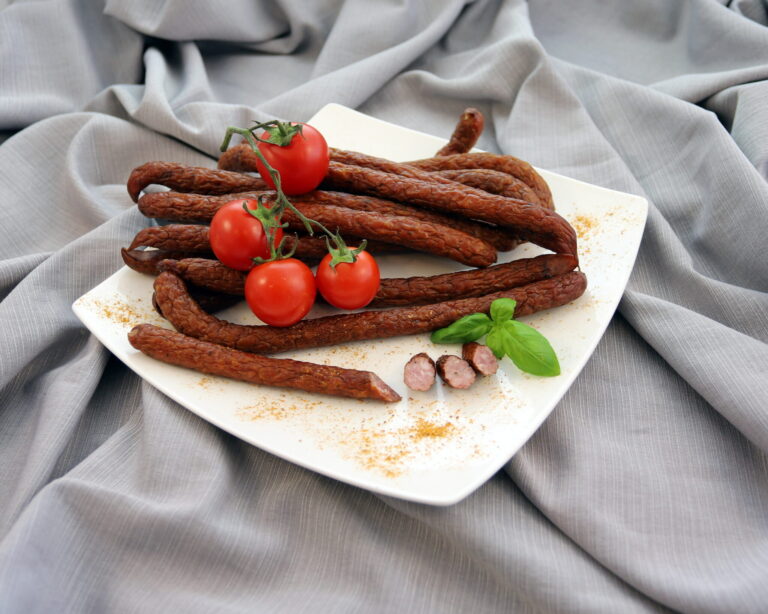 Kiełbasa wieprzowo-wołowa w jelicie baranim, średnio rozdrobniona, parzona, pieczona, wędzona