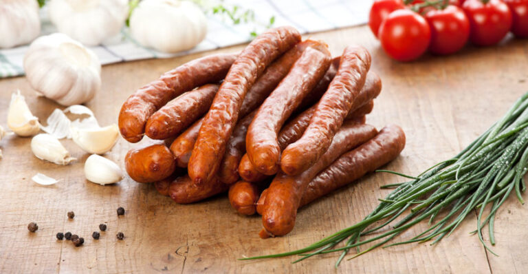 Kiełbasa wieprzowo-wołowa, średnio rozdrobniona, wędzona, pieczona